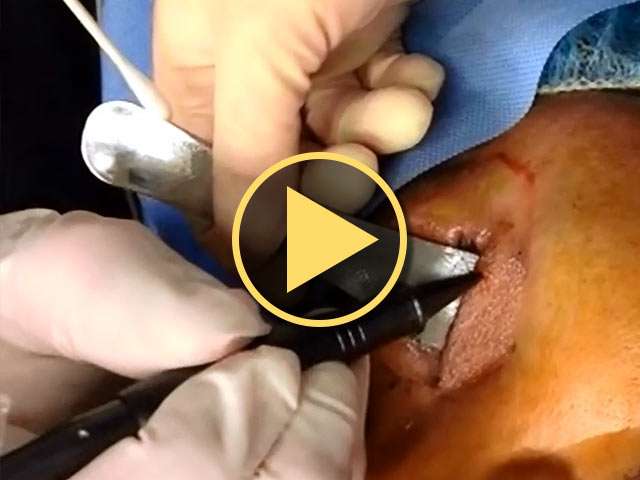 Lower eyelid laser surgery resurfacing using a LightScalpel flexible fiber CO2 laser. Using a LightScalpel laser for the blepharoplasty procedure allows Dr. Zimmerman to move freely during the skin resurfacing laser surgery.